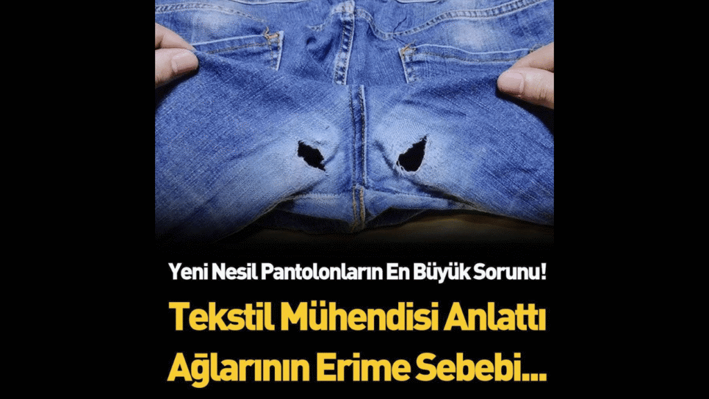 Yeni nesil kot pantolonların bacak aralarının erime yırtılma sebebi bakın neymiş? Ünlü tekstil mühendisi anlattı! Yeni nesil pantolonların ağ kısmının yırtılma nedeni meğerse bu yüzdenmiş. Mağazan beğenip pantolon alıyorsunuz ve 2-3 aya varmadan bacak araları yırtılıyor değil mi? Bir tekstil mühendisi kot pantolonların neden çabuk eskidiğini hatta bacak aralarının yırtılma derecesine geldiğini açıkladı. Yeni nesil pantolonların bacak arası neden eriyor? Öğrenince çok şaşıracaksınız! Detaylar yazımızın devamında..